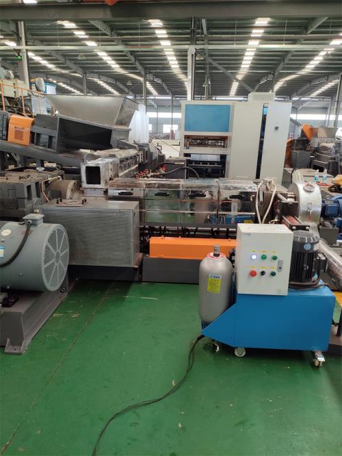 一、系統(tǒng)機(jī)組技術(shù)參數(shù)Ⅰ、機(jī)器顏色:主機(jī)為:公司標(biāo)色;電柜為:電腦色;防護(hù)罩:黃色Ⅱ、擠出工藝:75L密煉機(jī)——--自動(dòng)提升機(jī)——-錐雙喂料機(jī)——JDL-65D雙螺桿----——JDL-150單螺桿擠出機(jī)————風(fēng)冷模面熱切造粒輔機(jī)——一級(jí)旋風(fēng)分離器--——--二級(jí)旋風(fēng)分離器-----風(fēng)冷振動(dòng)篩(2.5m)----三級(jí)旋風(fēng)分離器---——風(fēng)吹成品料倉-------主機(jī)采用:PLC控制Ⅲ、加工物料:輻照交聯(lián)低煙無鹵料 密煉雙階熱切機(jī)組產(chǎn) 能:9-11噸/24小時(shí)注 意:取決于客戶的配方、工藝、生產(chǎn)條件客戶為何購買我們?cè)O(shè)備,我們價(jià)位在行業(yè)屬于中低價(jià)格,我們?cè)O(shè)備能給客戶帶來哪里利益,我們?cè)O(shè)備能給用戶帶來以下利益:1.特點(diǎn):這套設(shè)備主機(jī)是環(huán)保型;主機(jī)設(shè)備不需要接外循環(huán)水系統(tǒng);自帶循環(huán)冷卻統(tǒng)是我公司專利產(chǎn)品,2.雙螺桿齒輪箱冷卻采用:采用環(huán)保冷卻系統(tǒng)(環(huán)保型:發(fā)明專利號(hào):CN201911312134.6)不需要接外循環(huán)水冷卻,不用徘外水;采用閉環(huán)循環(huán)系統(tǒng),不用擔(dān)心長(zhǎng)時(shí)間使用水冷卻會(huì)產(chǎn)生水垢把冷卻器堵住,導(dǎo)致齒輪箱損壞3.單螺桿齒輪箱冷卻采用:采用環(huán)保冷卻系統(tǒng)(環(huán)保型:發(fā)明專利號(hào):CN201911312134.6)不需要接外循環(huán)水冷卻,不用徘外水;采用閉環(huán)循環(huán)系統(tǒng),不用擔(dān)心長(zhǎng)時(shí)間使用水冷卻會(huì)產(chǎn)生水垢把冷卻器堵住,導(dǎo)致齒輪箱損壞4.雙階主機(jī)水箱冷卻系統(tǒng)采用:采用環(huán)保冷卻系統(tǒng)(環(huán)保型:發(fā)明專利號(hào):CN201911312134.6)不需要接外循環(huán)水冷卻,不用徘外水;采用閉環(huán)循環(huán)系統(tǒng)5.節(jié)能:普通筒體筒體冷卻;例如:第5區(qū)溫度超高;這是電子閥導(dǎo)通;第5區(qū)冷卻回水就會(huì)影響第六區(qū)和第四區(qū)的溫度下降;就會(huì)導(dǎo)致第四六區(qū)加溫;這種情況會(huì)一直循環(huán)出現(xiàn);導(dǎo)致電費(fèi)浪費(fèi);我們現(xiàn)在采用環(huán)保型就徹底解決這個(gè)問題;加我們委托第三方開發(fā)溫控模塊,溫控加熱系統(tǒng)比同類設(shè)備節(jié)能:10-20%電費(fèi),就是每噸能為客戶節(jié)省電費(fèi)10元,每年大概能節(jié)約電費(fèi)3萬6.減少投資款:3米*3米*2.5米冷卻水池;60立方冷卻水塔及4KW高壓水泵2臺(tái)及管道,10天施工費(fèi)用:能減少固定投資大概:10-12萬元左右7.雙螺桿齒輪箱采用D型8.液壓板式換網(wǎng)器通水冷卻控溫二.密煉雙階熱切機(jī)組 技術(shù)配置